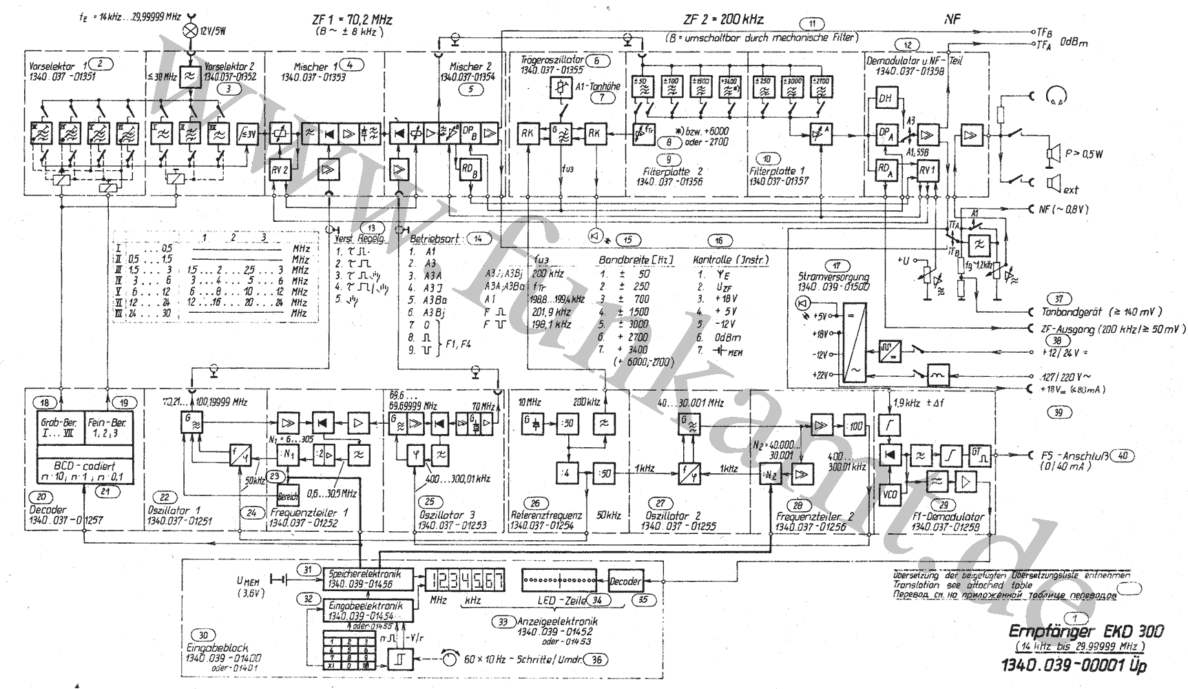 Im Frequenzbereich zwischen 14 kHz und 30 MHz beherrscht er die Empfangsarten A1, A3, SSB, A4, F1 und F4.