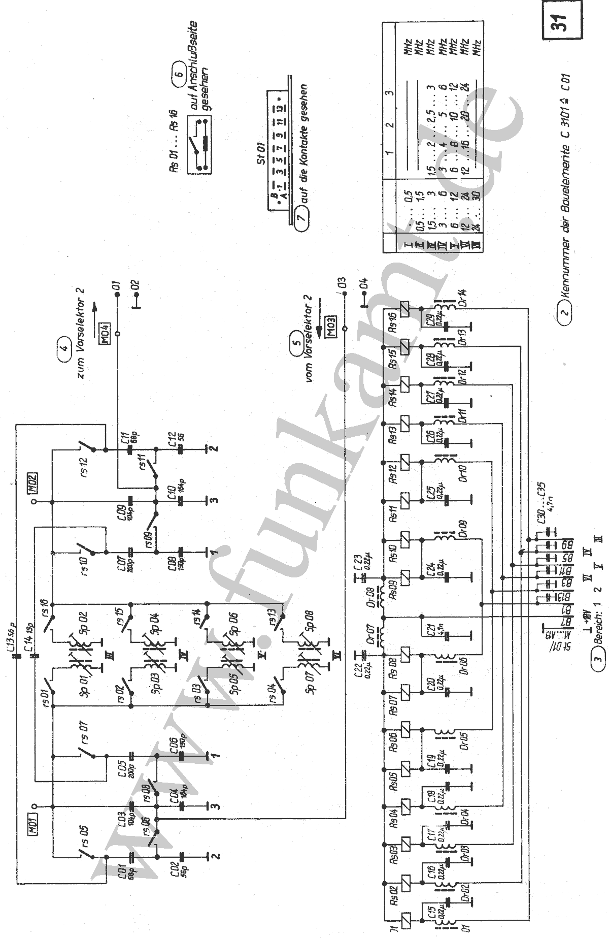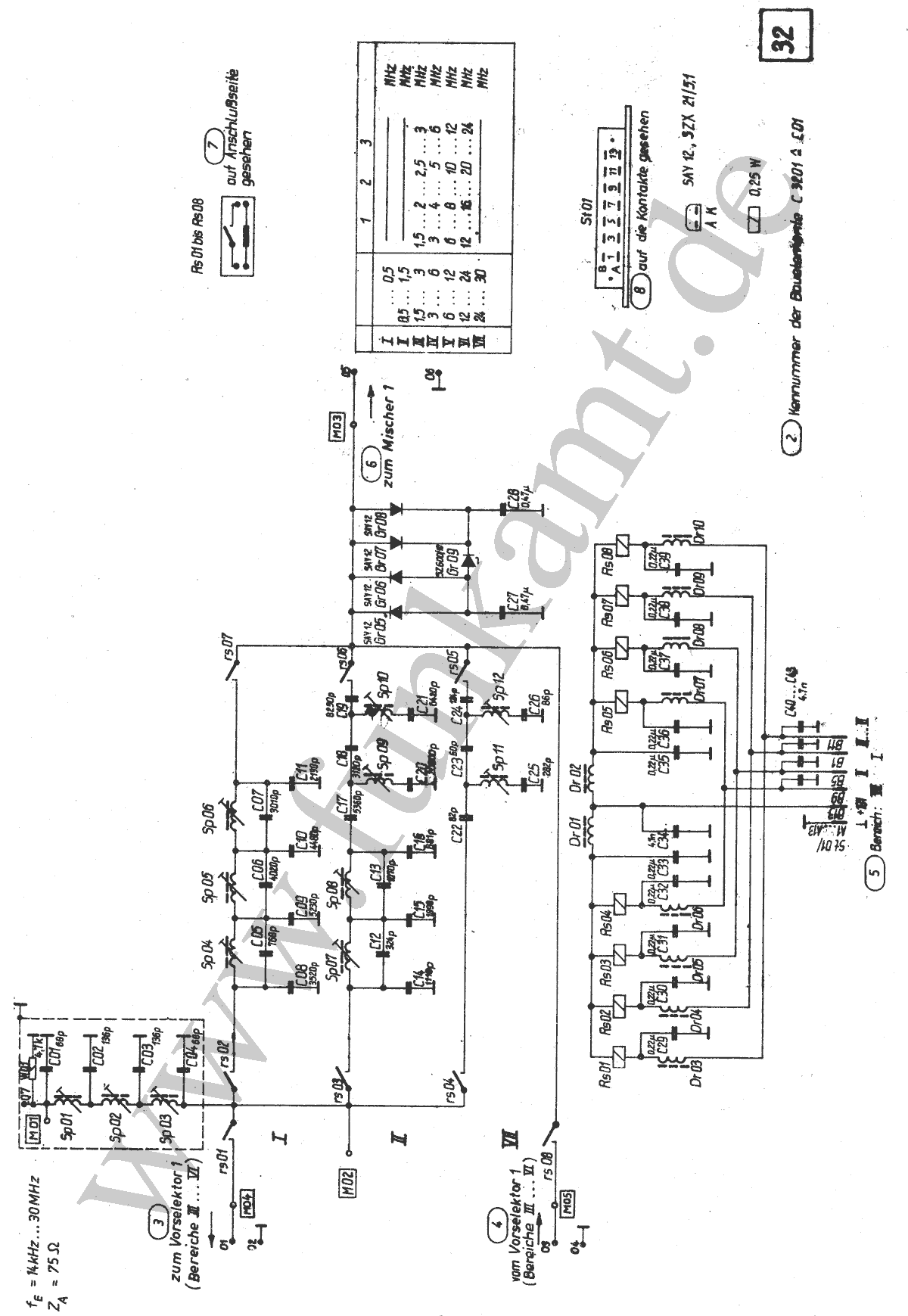 Vorselektion: durch zwangsweise mit der Frequenzwahl umgeschaltete Vorselektor-Teilbereiche ( 15 Bereiche )